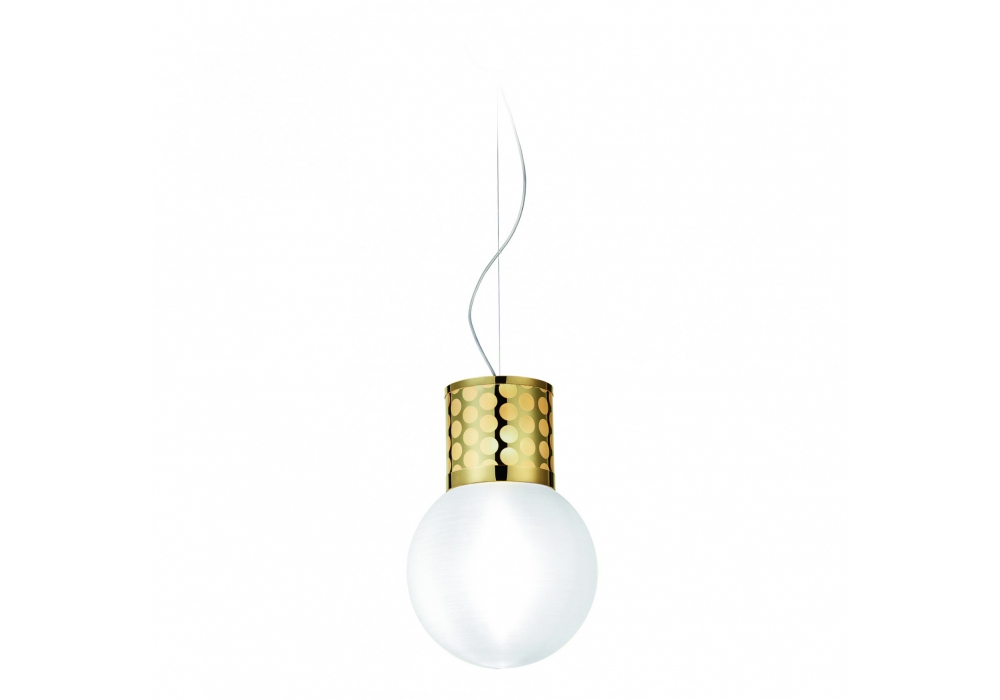 Atmosfera conçue par Goldflex® ou Pewterflex® pour Slamp est une lampe à suspension avec corps de lampe en Goldflex® ou Pewterflex®. Le diffuseur est sphérique en méthacrylate blanc et protège les sources lumineuses LED à filament dimmable. Atmosphère est disponible en différentes finitions.