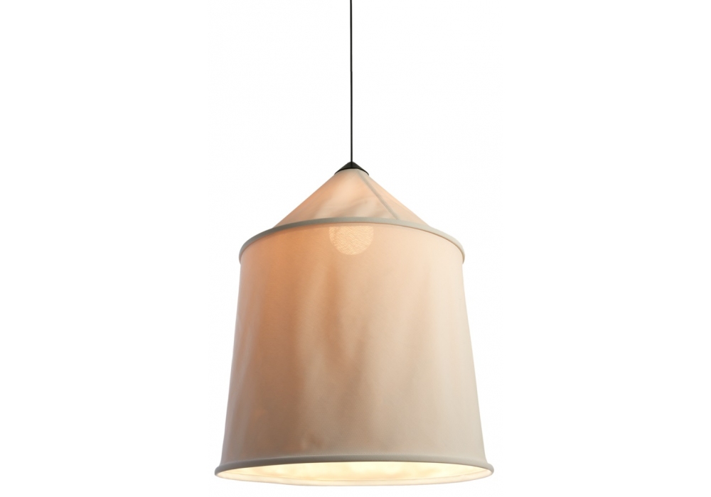Jaima conçue par Joan Gaspar pour Marset est une lampe à suspension en tissu, disponible en différentes finitions et tailles. Convient pour l'extérieur.