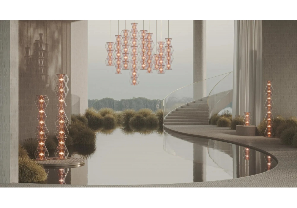 Argyle conçue par Nichetto Studio pour Rakumba est une lampe à suspension en verre soufflé, disponible en différentes finitions.