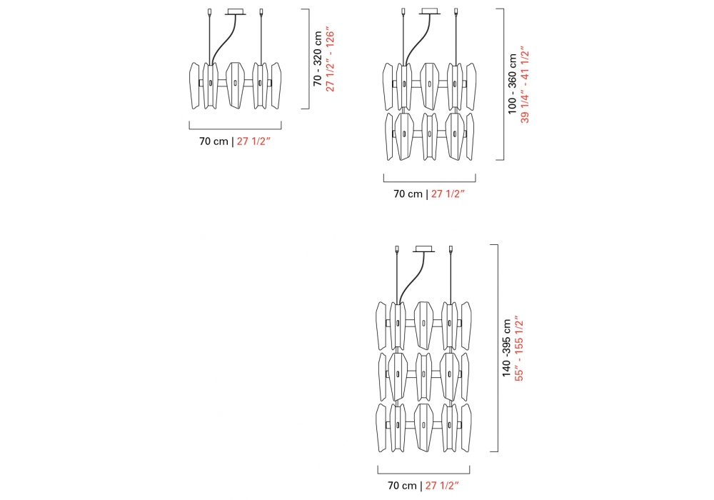 | Dimensions | Ø 70 x H 70-320 cm; Ø 70 x H 100-360 cm; Ø 70 x H 140-395 cm. |