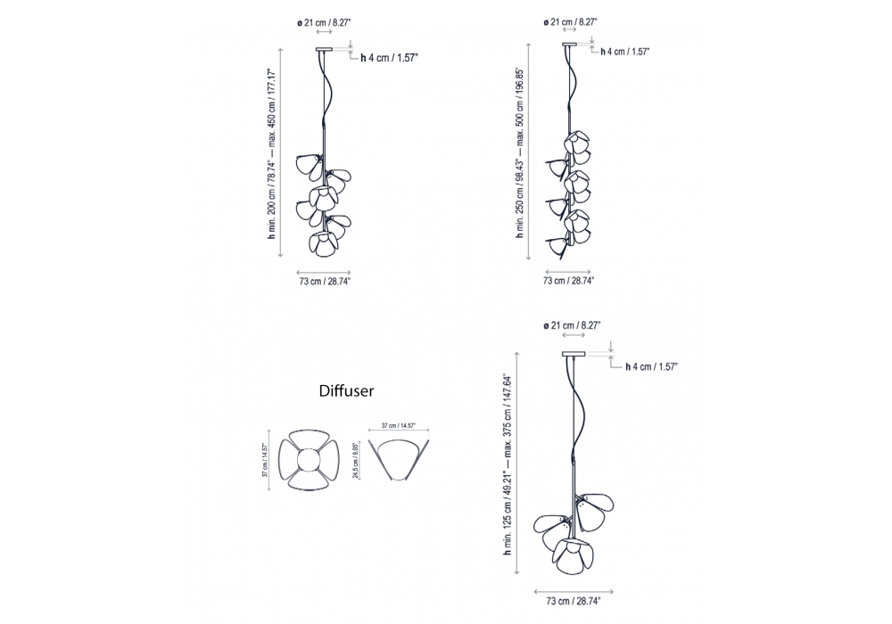 | Dimensions | 73 x 37 x H 125 cm Hmax 375 cm; 73 x 37 x H 200 cm Hmax 450 cm; 73 x 37 x H 250 cm Hmax 500 cm. |