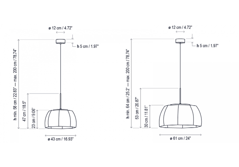 | Diamètre de abat-jour | Ø 43 cm; Ø 61 cm. |