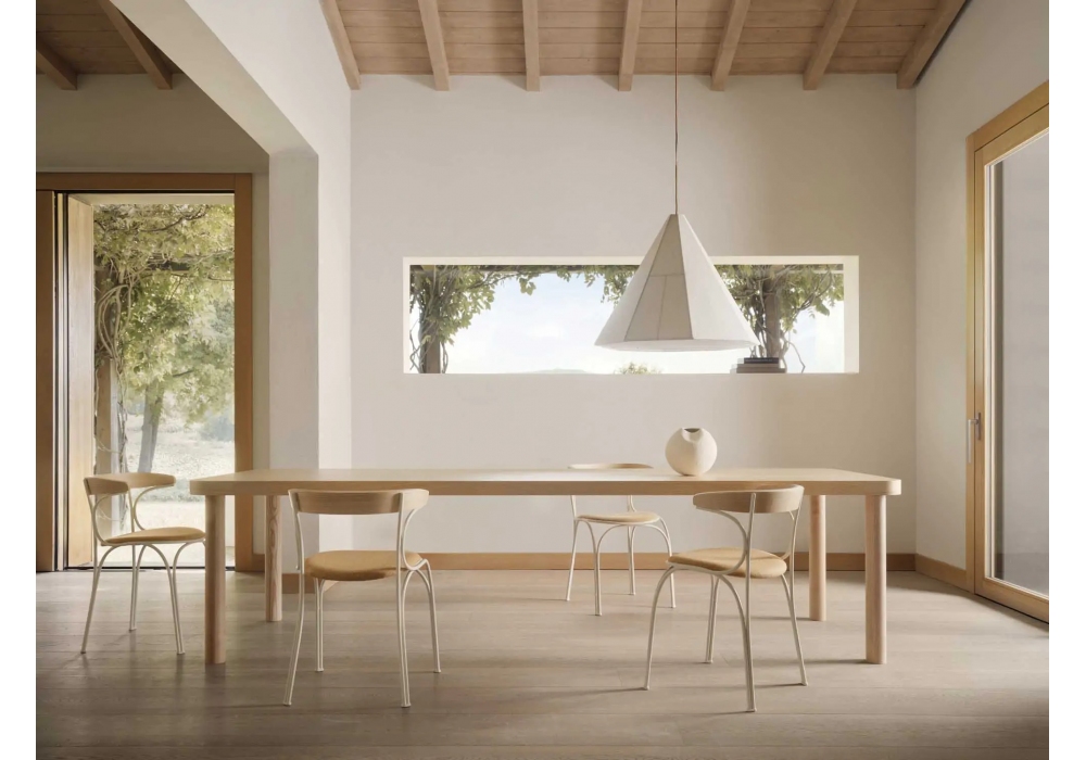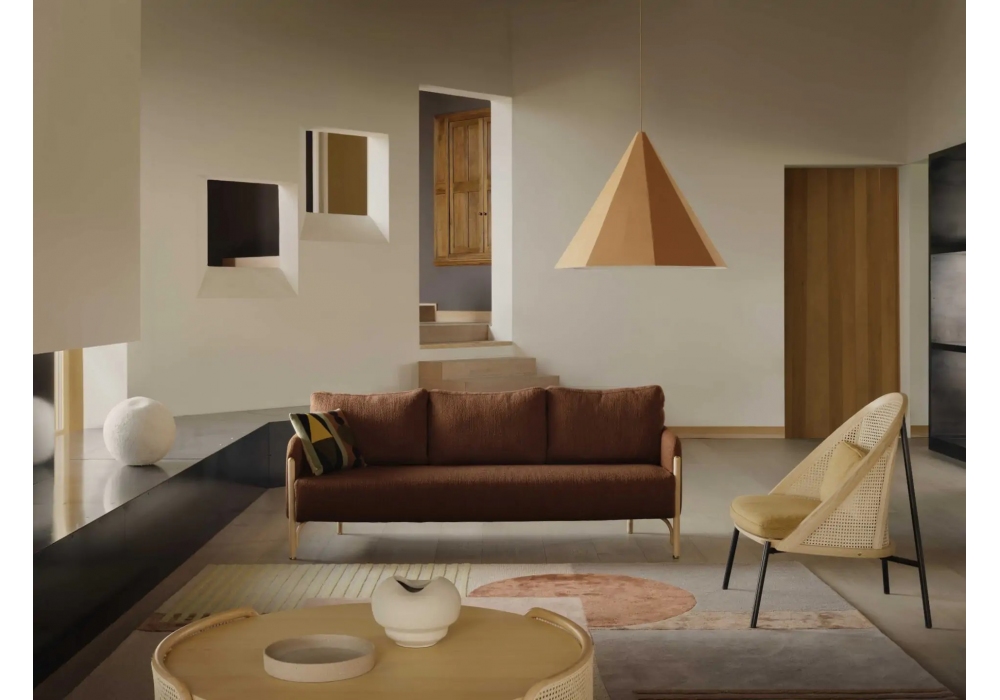 Tipì conçue par Francesca De Giorgi est une lampe à suspension avec abat-jour en tissu et diffuseur de lumière en parchemin. Disponible en différentes finitions et tailles.