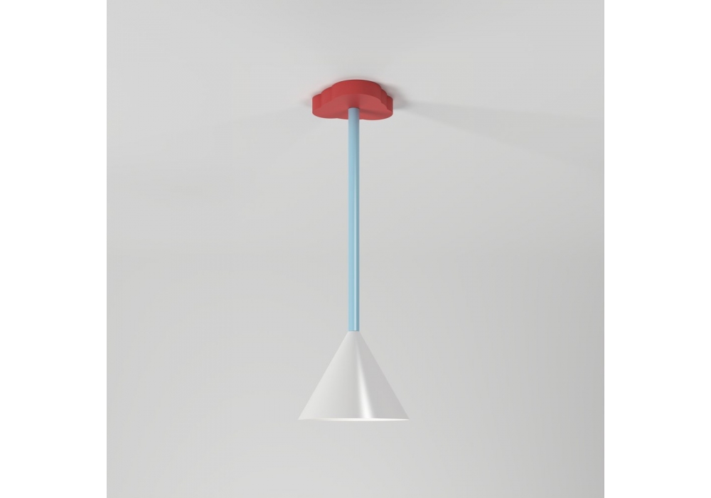 Outlines conçue par Atelier Areti est une lampe à suspension en métal peint, disponible en différentes finitions et modèles. Sur demande, il est également possible de personnaliser les couleurs du cône, du tube et de la base.
