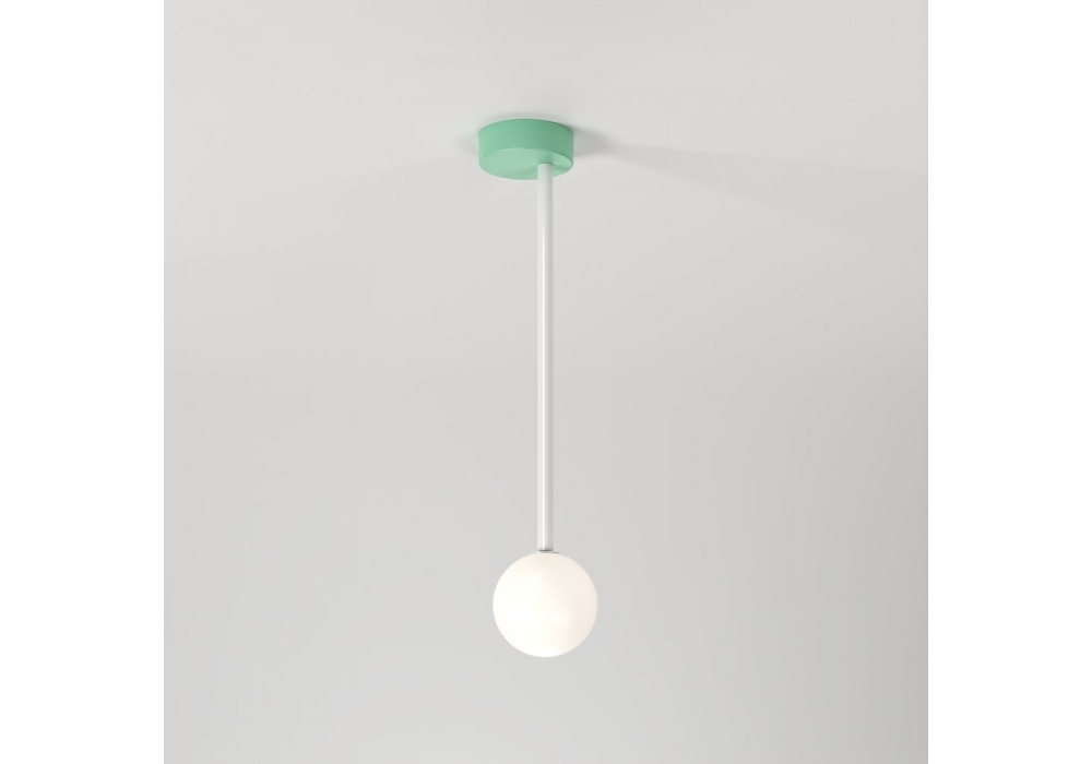 Off Centre conçue par Atelier Areti est une lampe à suspension réalisée en métal peint, disponible en différentes finitions. Sur demande, il est également possible de personnaliser les couleurs du tube et de la rosace.