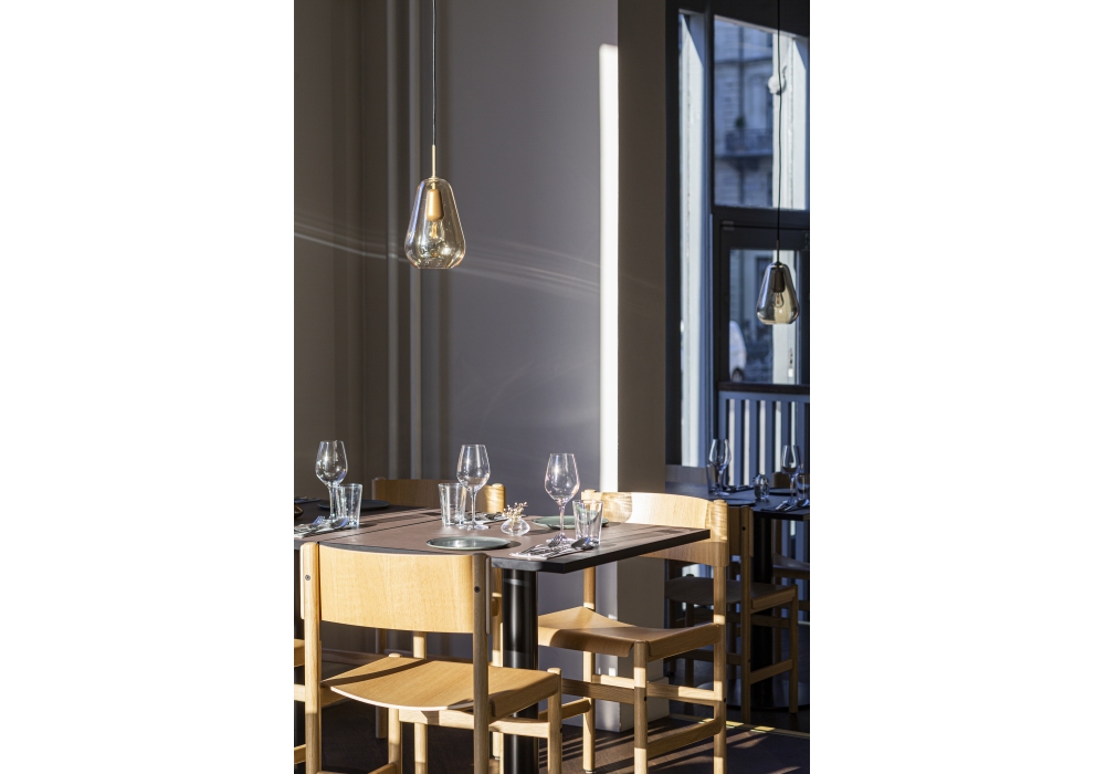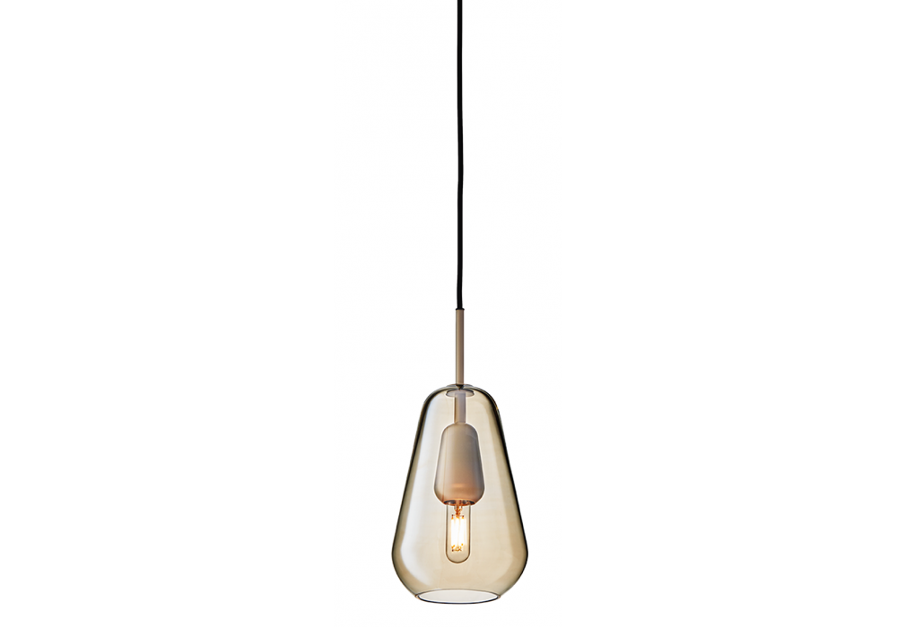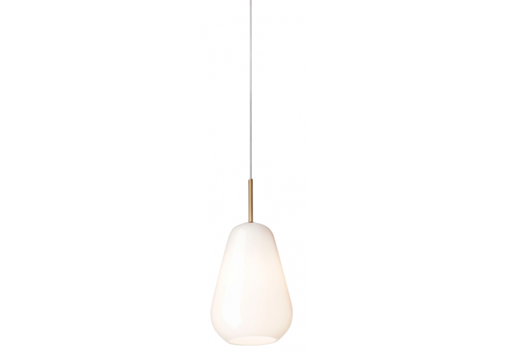 Anoli conçue par Sofie Refer pour Nuura est une suspension avec diffuseur en verre soufflé opale ou doré. La finition du câble varie en fonction de l'enceinte choisie ; noir pour le diffuseur doré et blanc pour celui opale.