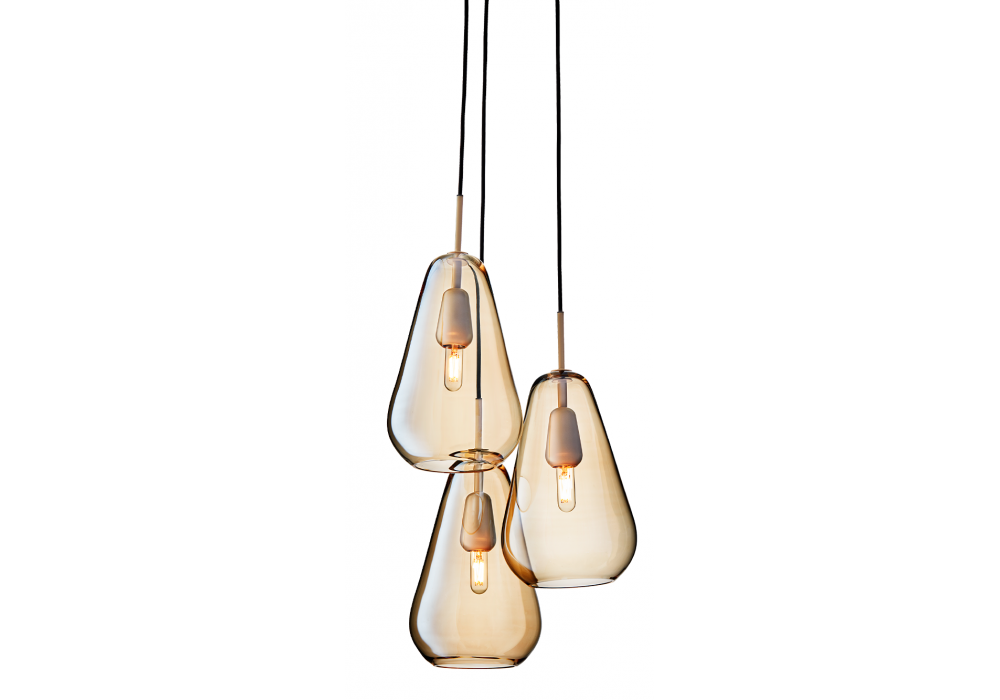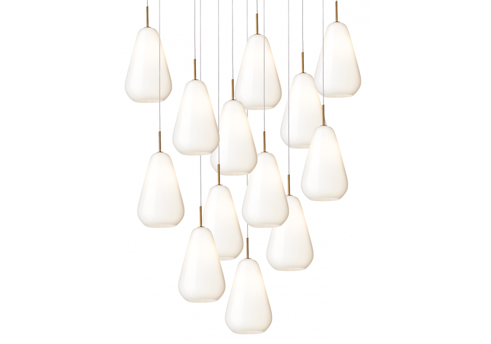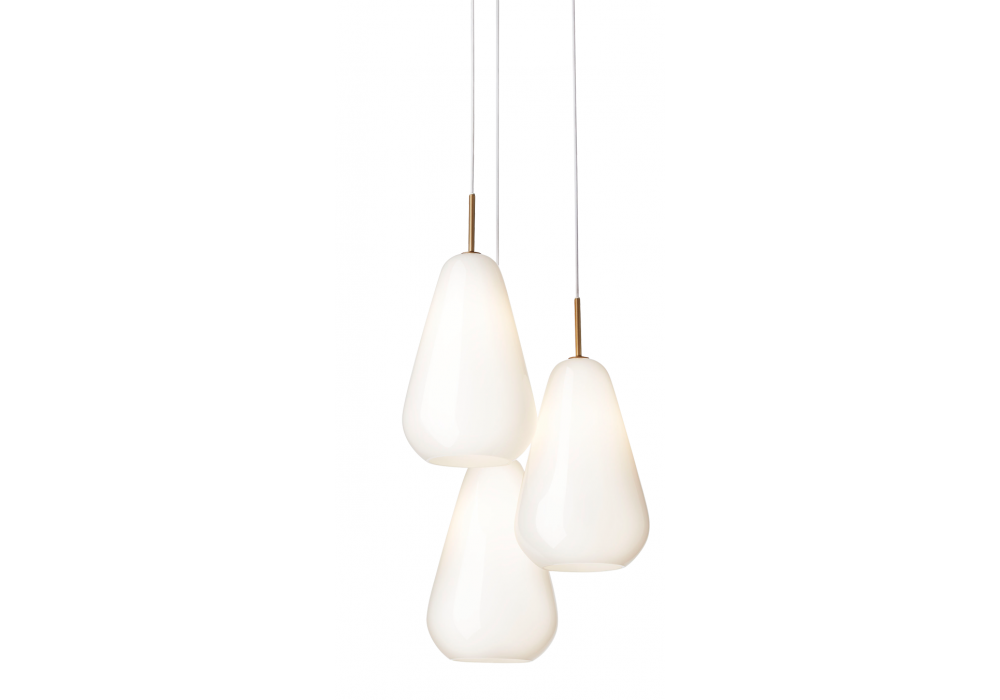Anoli conçu par Sofie Refer pour Nuura est un lustre avec diffuseurs en verre soufflé opale ou doré. La finition du câble varie en fonction des enceintes choisies ; noir pour les diffuseurs dorés et blanc pour ceux opales.