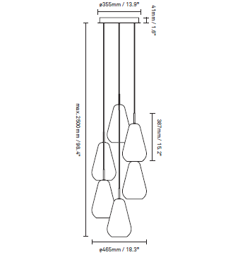 | Dimensions | Anoli 3_ Ø 25.5 x H 250 cm max; Anoli 6_ Ø 35.5 x H 250 cm max; Anoli 13_ Ø 96.5 x H 250 cm max. |