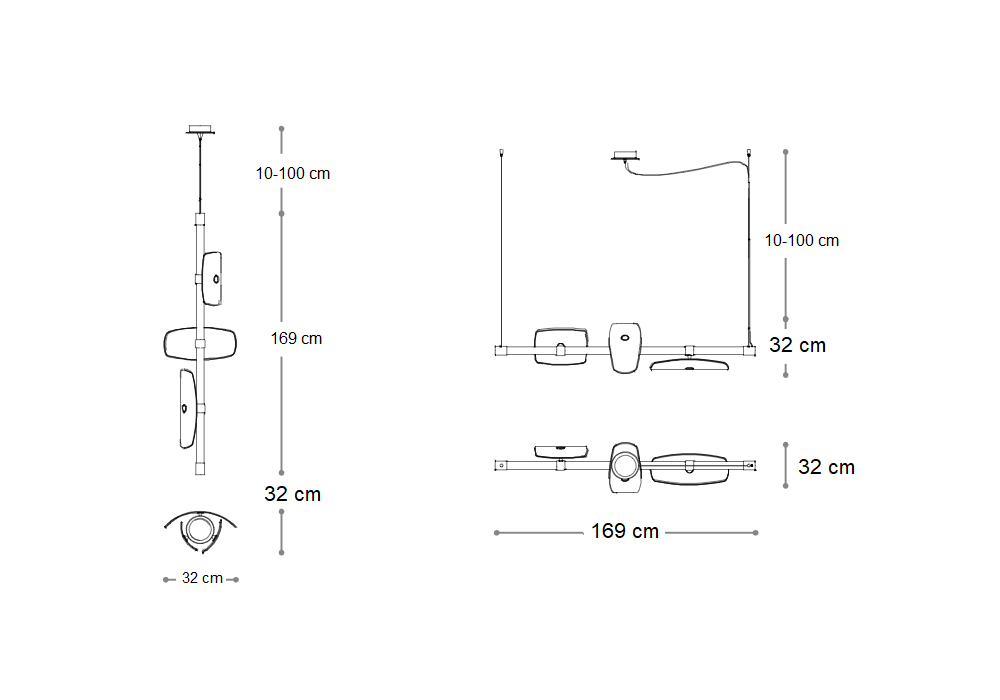 | Diffuseur | 32 x 32 x H 169 cm; 169 x 32 x H 32 cm. |