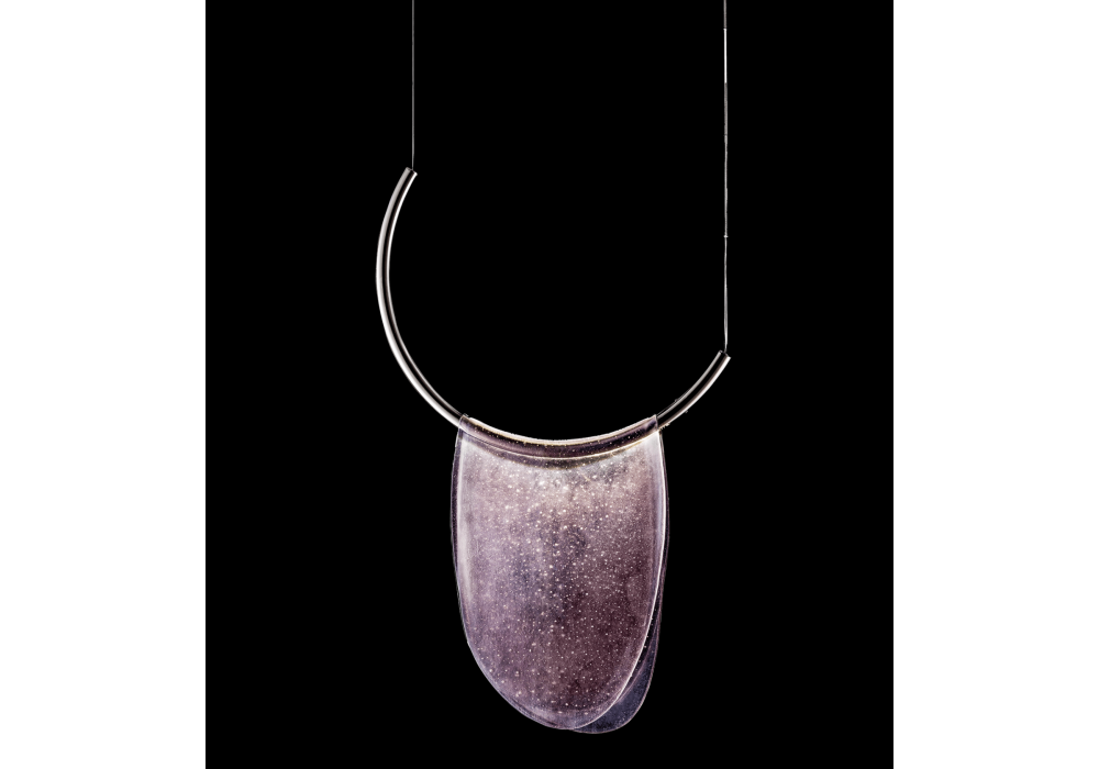 Dalì conçue par Nava + Arosio Studio pour Italamp est une suspension avec structure en métal canon de fusil et diffuseurs en verre thermoformé coloré.