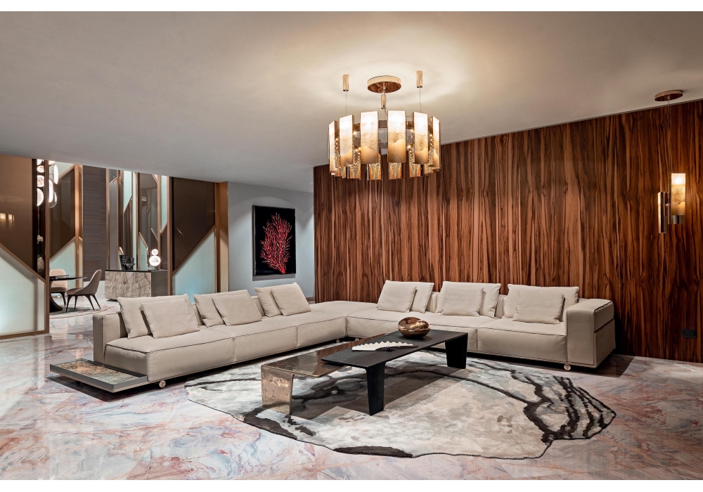 Polaris conçu par Alessandro La Spada pour Visionnaire est un lustre circulaire composé de multiples éléments incurvés en aluminium poli à l'extérieur et satiné à l'intérieur. Les diffuseurs sont en veinage rétroéclairé et le système d'éclairage adopté est de type COB LED. La structure interne est structurée par des anneaux métalliques soutenus par des câbles en acier. Polaris est disponible en différents modèles et finitions.