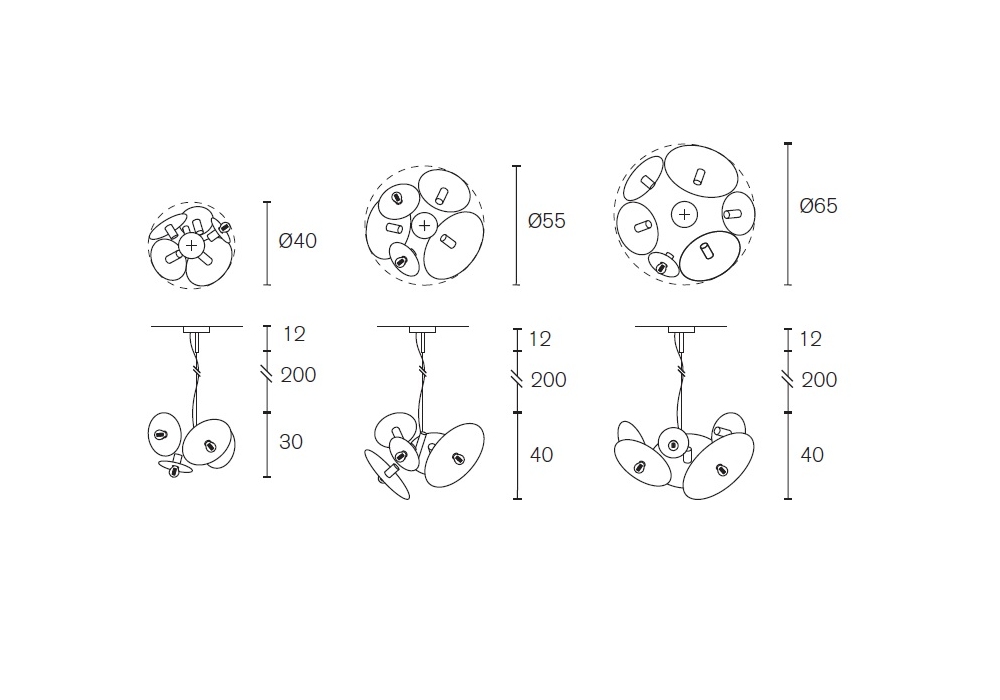 | Dimensions | Ø 40 x H 30 cm; Ø 55 x H 40 cm; Ø 65 x H 40 cm. |
