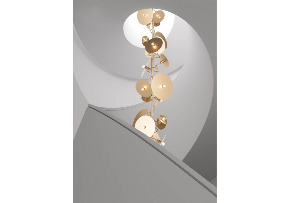 Solis Vertical conçue par William Brand pour Brand Van Egmond est une suspension réalisée avec structure et réflecteurs en métal. Disponible en différentes finitions.