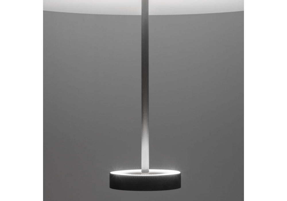 Servoluce conçue par Park Associati pour Firmamento Milano est une suspension à lumière directe et indirecte réalisée avec une structure en aluminium peint en blanc et une tige en laiton.