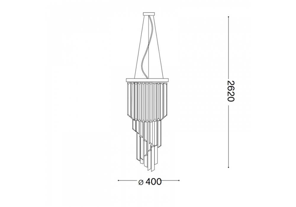 Carlton SP8 conçu et produit par Ideal Lux est un lustre avec une structure porteuse en métal chromé. Les pendentifs sont des barres de cristal transparentes retenues par des chaînes octogonales ancrées au cadre circulaire. Les sources lumineuses adoptées sont de type LED.