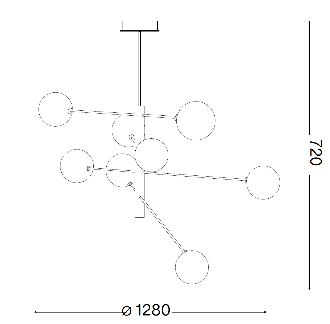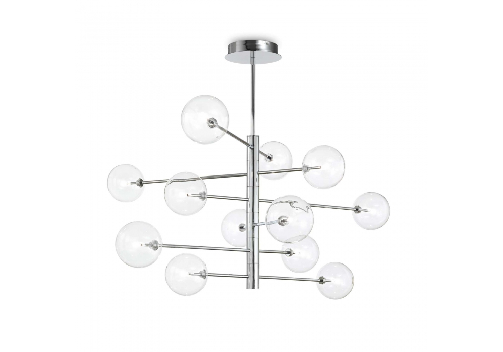 Equinoxe conçue et réalisée par Ideal Lux est une lampe à suspension avec rosace et structure porteuse en métal tubulaire. Les bras tubulaires supportent des diffuseurs sphériques en verre soufflé transparent et protègent les sources lumineuses LED. Equinoxe est disponible en différents modèles et finitions.