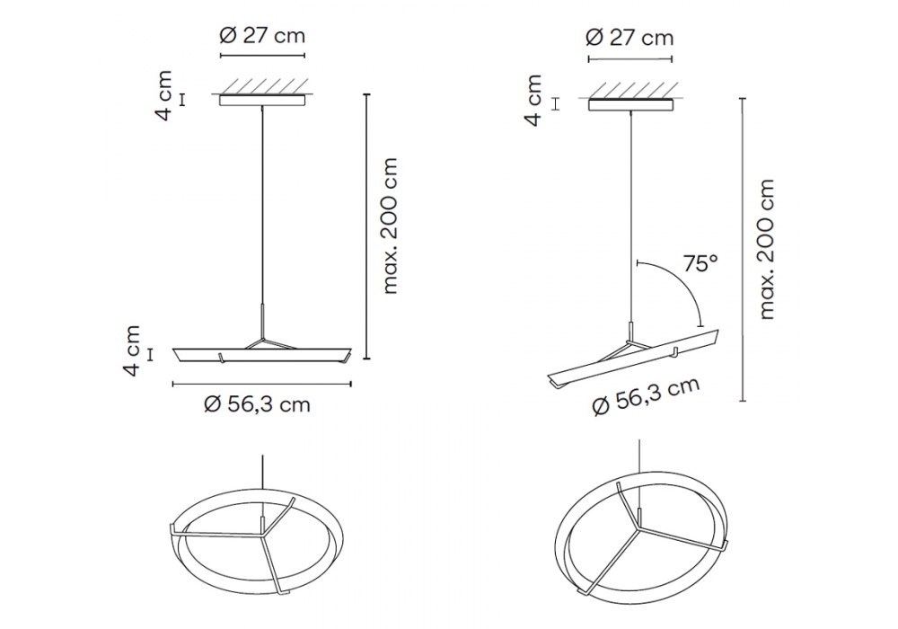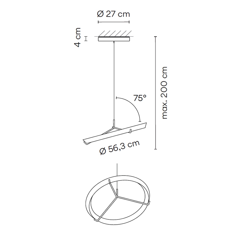 | Dimensions | Ø 56,3 x H 4 max 200 cm; Ø 56,3 x H 4 max 200 cm. |