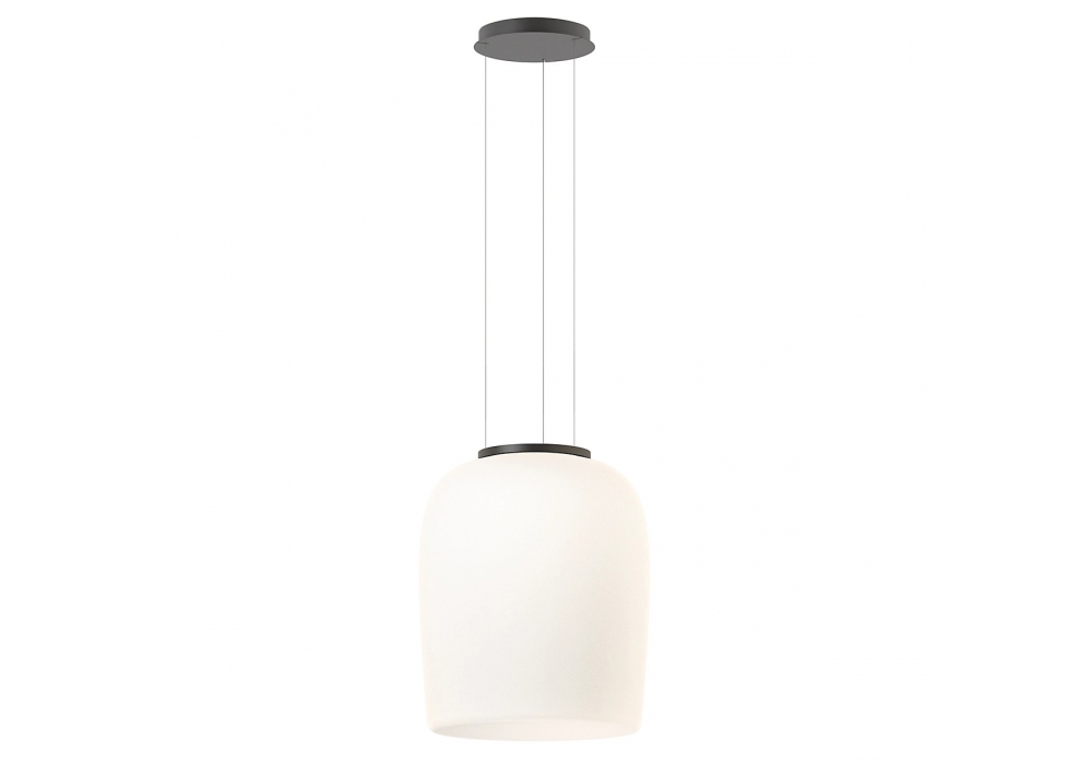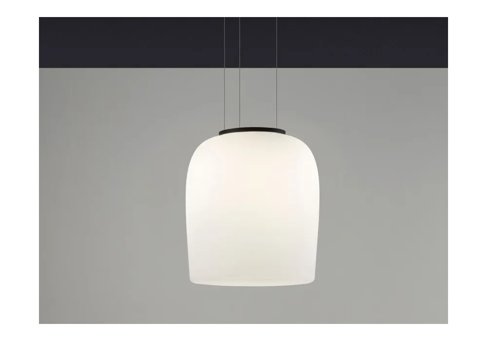 Ghost conçue par Arik Levy pour Vibia est une lampe à suspension avec une structure portante en aluminium peint en noir. Le diffuseur est en verre triplex opale soufflé bouche et abrite une source lumineuse LED. Ghost est disponible en différentes versions dimmables.
