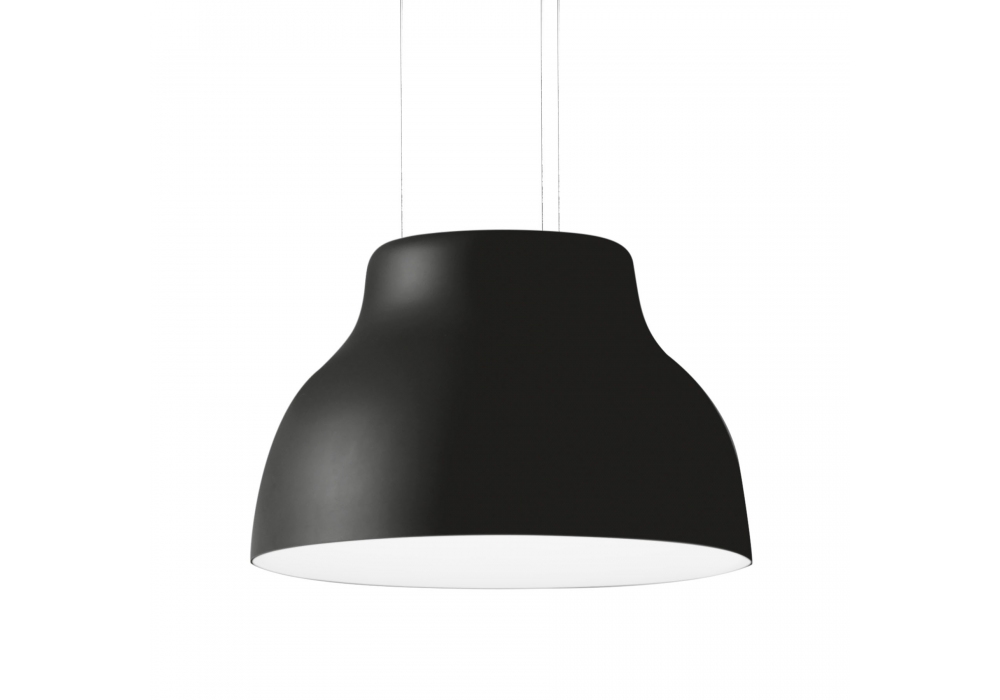 Cicala conçue par Emiliana Martinelli pour Martinelli Luce est une lampe à suspension en forme de cloche structurée en aluminium peint. Le diffuseur est en méthacrylate opale blanc et protège une source de lumière LED. Cicala est disponible en différentes finitions.