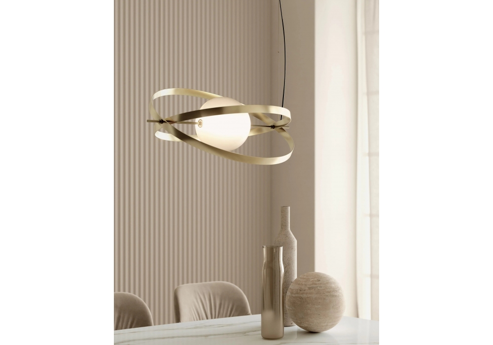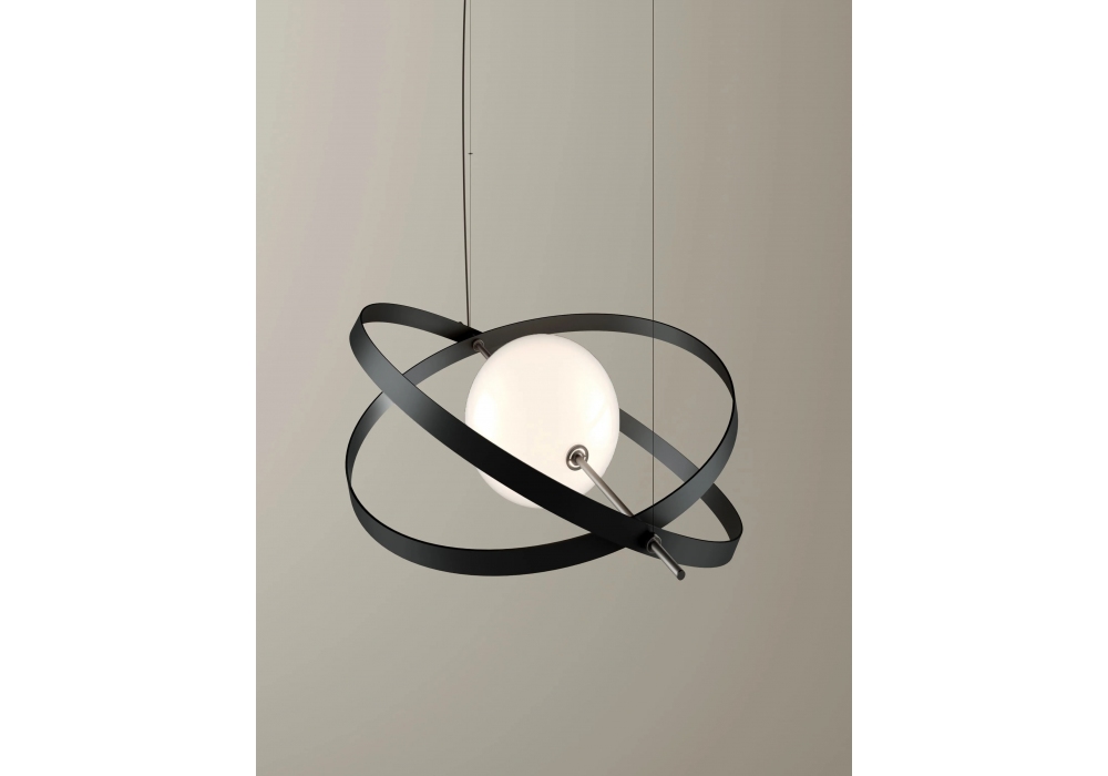56.54 Papillon conçue par Studio F+B Design pour Bontempi est une lampe à suspension avec sphère en verre borosilicate sablé et structure en acier peint. Disponible en différentes finitions.