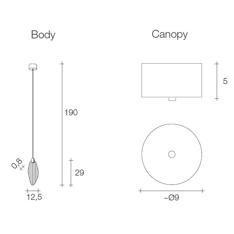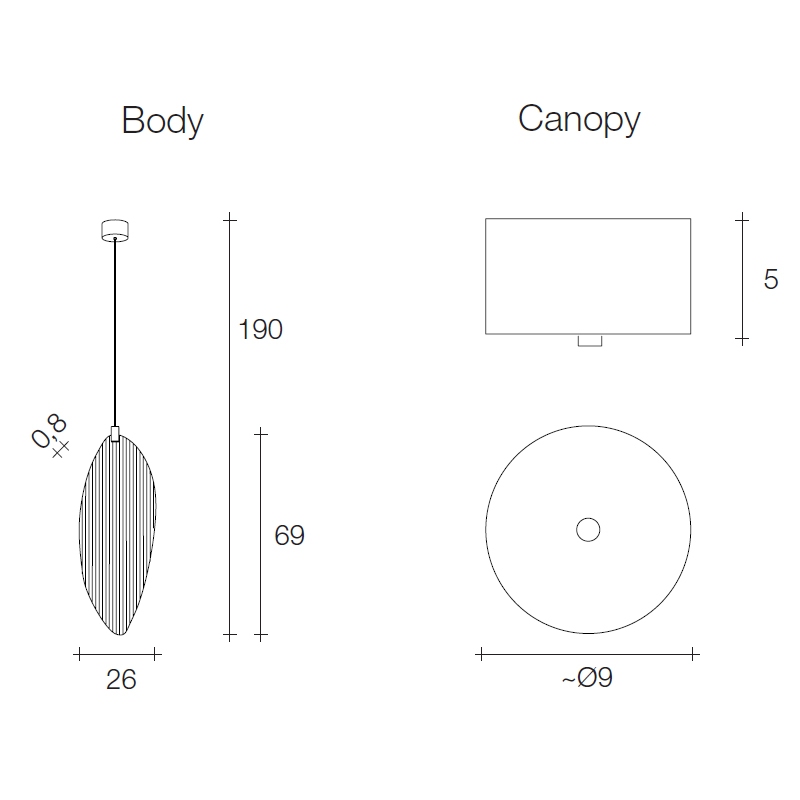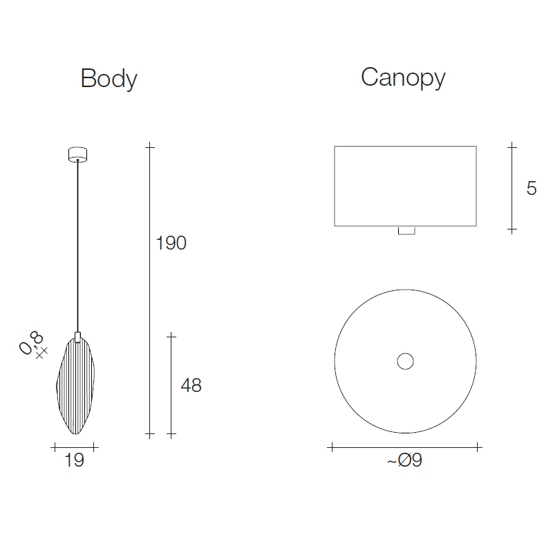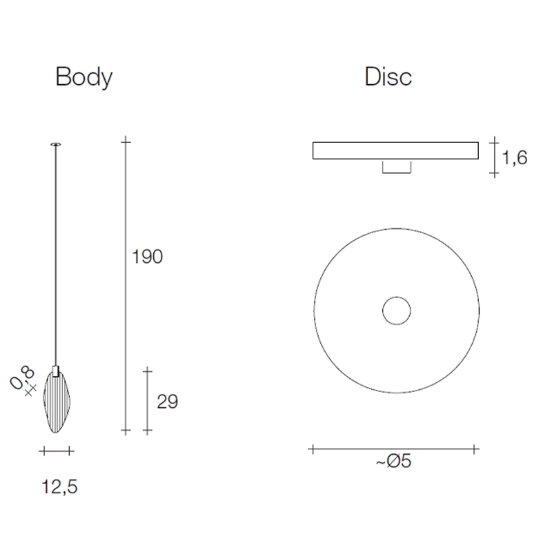 | Plafond rose | Ø 5 x H 1,6 cm; Ø 9 x H 5 cm. |