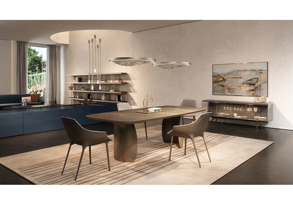 Acqua conçue par Marco Piva pour Reflex Angelo est une suspension avec corps en verre de Murano transparent. Structure et rosace en métal finition Bronze. Système d'éclairage LED : STRIP 24V dans la structure et 3x3W spot 12V dans la rosace. Bande LED RGB blanche en option.