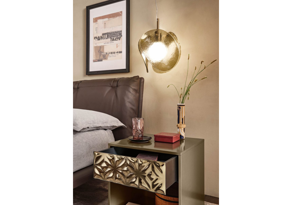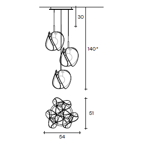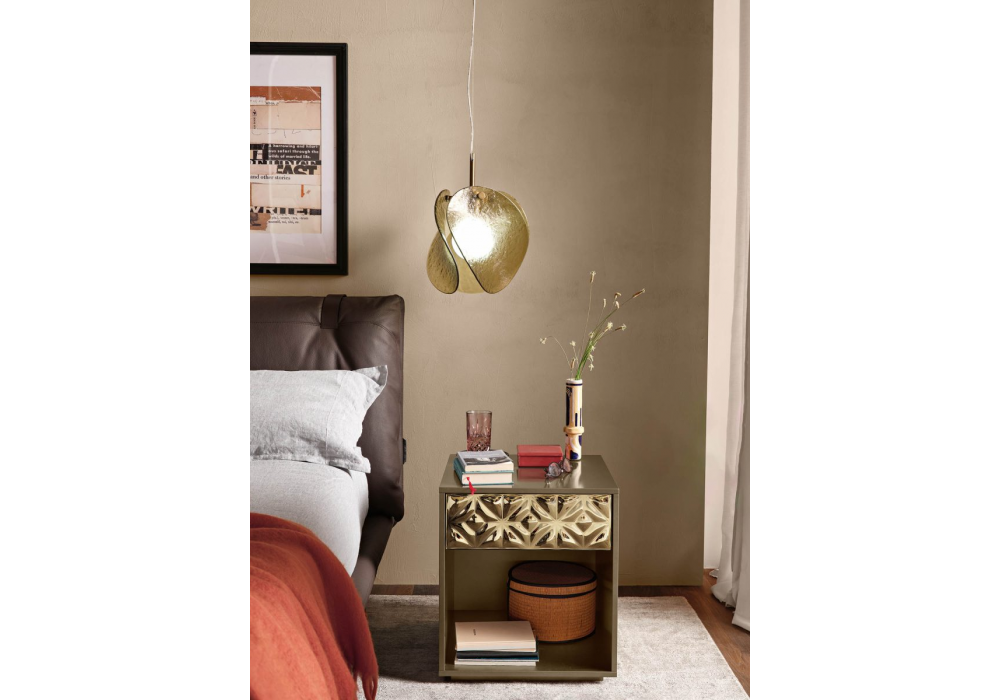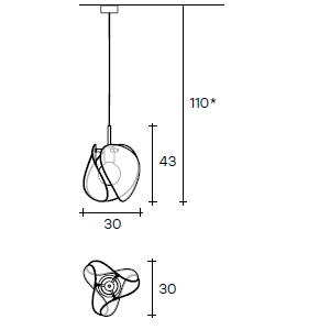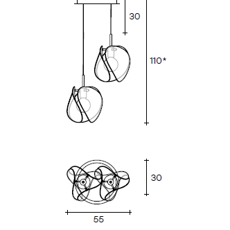 Tau conçue par Ryosuke Fukusada est une suspension avec structure en métal finition laiton bruni. Diffuseur décoratif composé de trois éléments en verre fumé ou en bronze fondu à haute température.