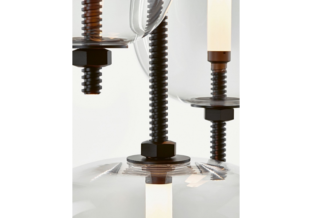 Under Pressure, conçue par Boris Klimek et Lenka Damova pour Brokis, est une suspension en verre soufflé disponible en différentes finitions. Le corps et la rosace sont en métal laqué brossé.