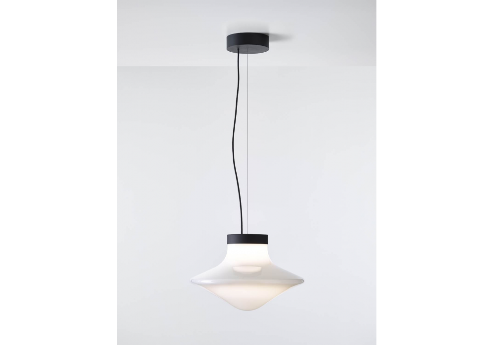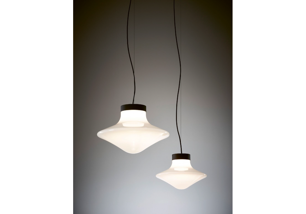 Trottola conçue par Federico Peri pour Brokis est une suspension en verre brillant disponible en plusieurs finitions. Le corps de la lampe et la rosace sont en métal. Le câble est en textile. La source lumineuse utilisée est une LED à intensité variable, disponible dans différents systèmes.