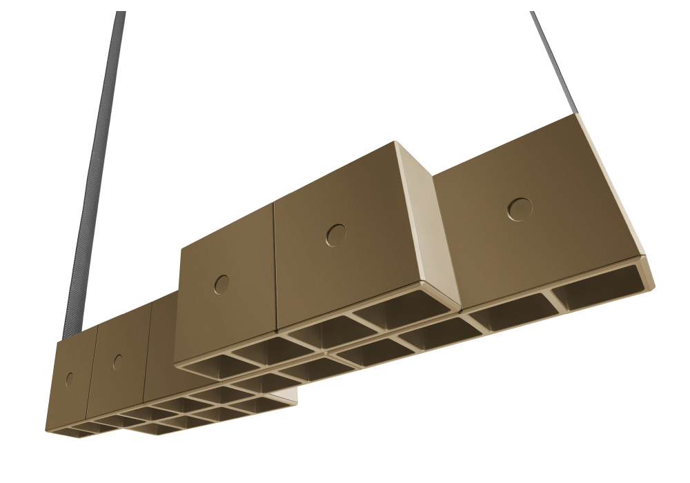 Tsai Light conçue par Mario Tsai pour Cassina est une suspension LED en aluminium peint couleur champagne ou poli. Disponible en plusieurs modèles.