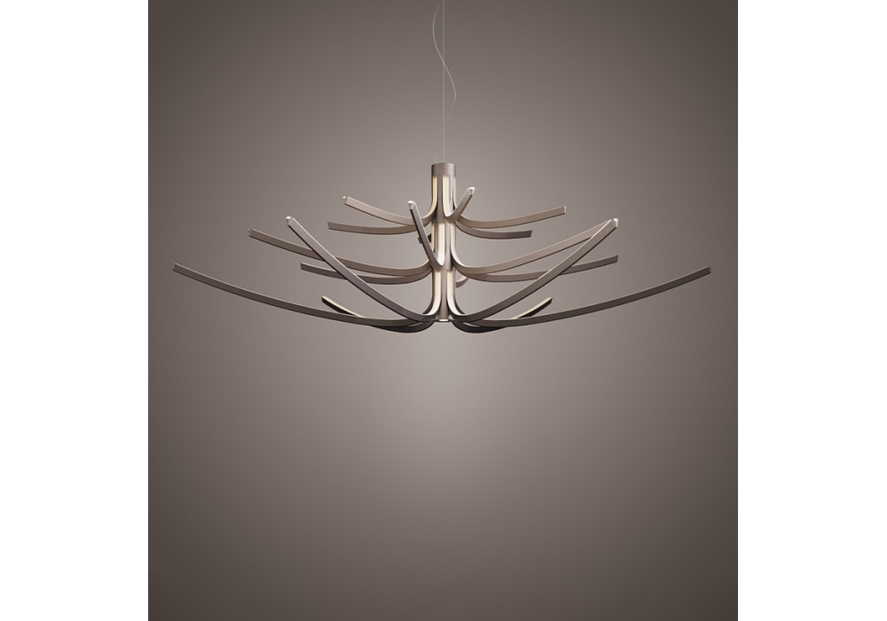 Allumette conçue par Alberto et Francesco Meda pour Foscarini est une lampe à suspension inspirée des lustres classiques, mais reformulée dans ses éléments essentiels, elle est composée de bras en aluminium courbés avec LED intégrées. Elle peut être produite dans différentes configurations esthétiques, sur un ou plusieurs niveaux.
