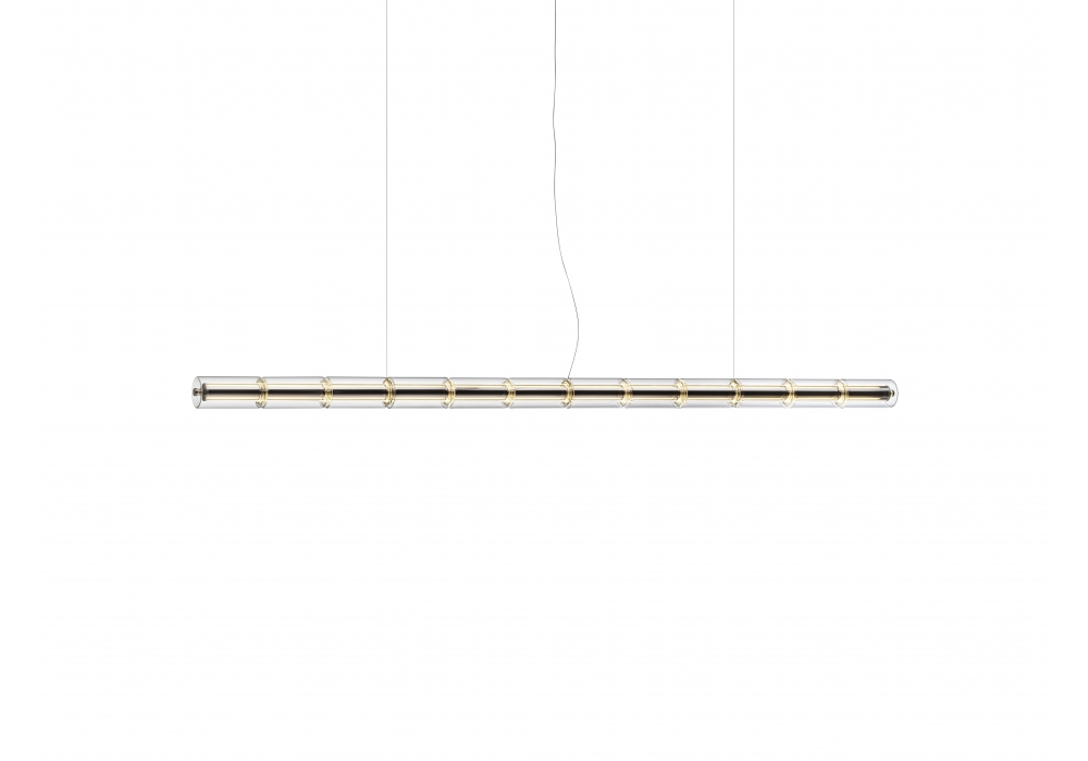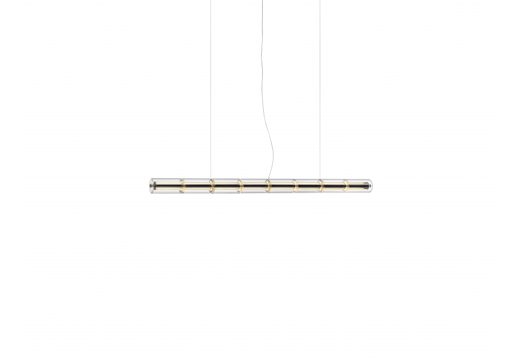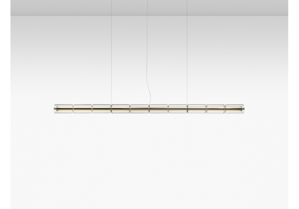 Luce Cilindrica conçue par Ronan Bouroullec pour Flos est une suspension composée d'une structure en aluminium extrudé poli et de modules sphériques en verre borosilicate transparent. L'alimentation est intégrée à la rosace. Un bouton de commande tactile, situé à une extrémité, permet de contrôler l'appareil selon trois modes différents.