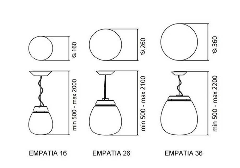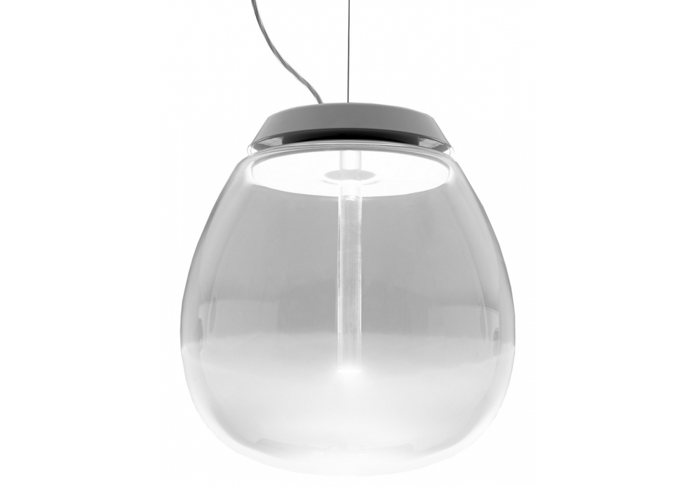 Empatia conçue par Carlotta de Bevilacqua et Paola di Arianello pour Artemide est une lampe à suspension avec base d'ancrage circulaire en aluminium et câble de suspension en acier. Le corps d'éclairage est en verre soufflé à la bouche avec un diffuseur en méthacrylate et abrite une source de lumière LED avec système de variateur Push. L'empathie est disponible en différentes tailles.