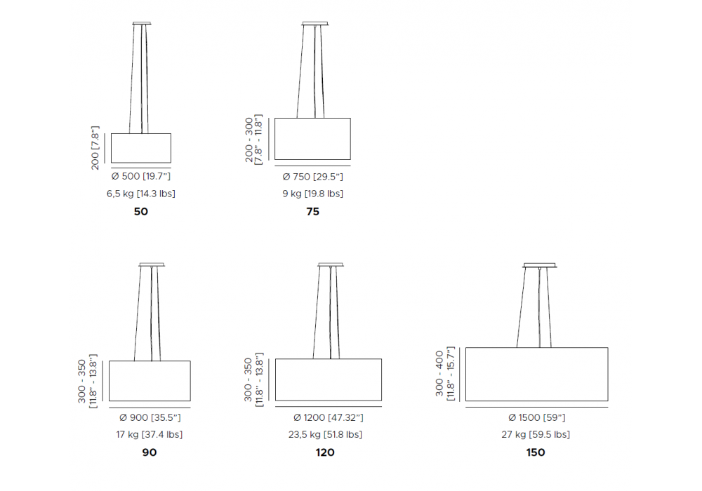| Total power | 50/75_ 1 x 53 W; 90/120/150_ 1 x 70 W. |