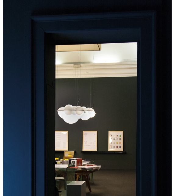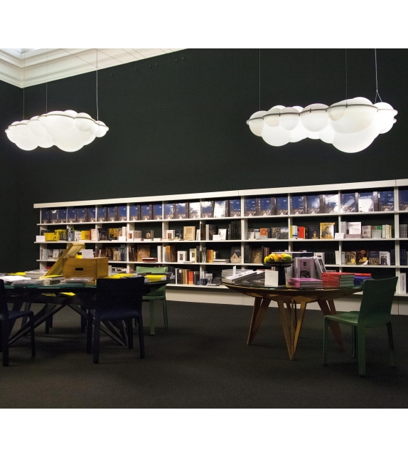 Nuvola conçue par Mario Bellini pour Nemo est une lampe à suspension en polyéthylène opale naturel rotomoulé. La source lumineuse utilisée est de type LED dimmable. Nuvola est disponible en différentes tailles.