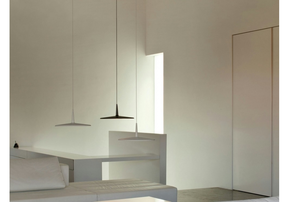 Skan conçue par Lievore, Altherr, Molina pour Vibia est une lampe à suspension circulaire avec rosace en acier et corps en aluminium peint. Le diffuseur est en méthacrylate et protège une source de lumière LED à intensité variable. Skan est disponible en différents modèles, nuances de sources lumineuses et intensité variable.