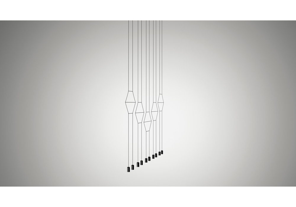 Wireflow Linear par Vibia est une lampe à suspension avec une rosace quadrangulaire en aluminium et une structure tubulaire en acier peint en noir. Les diffuseurs sont en polycarbonate et protègent les sources lumineuses LED à intensité variable. Wireflow Linear est disponible en différents modèles, nuances de sources lumineuses et dimmabilité.