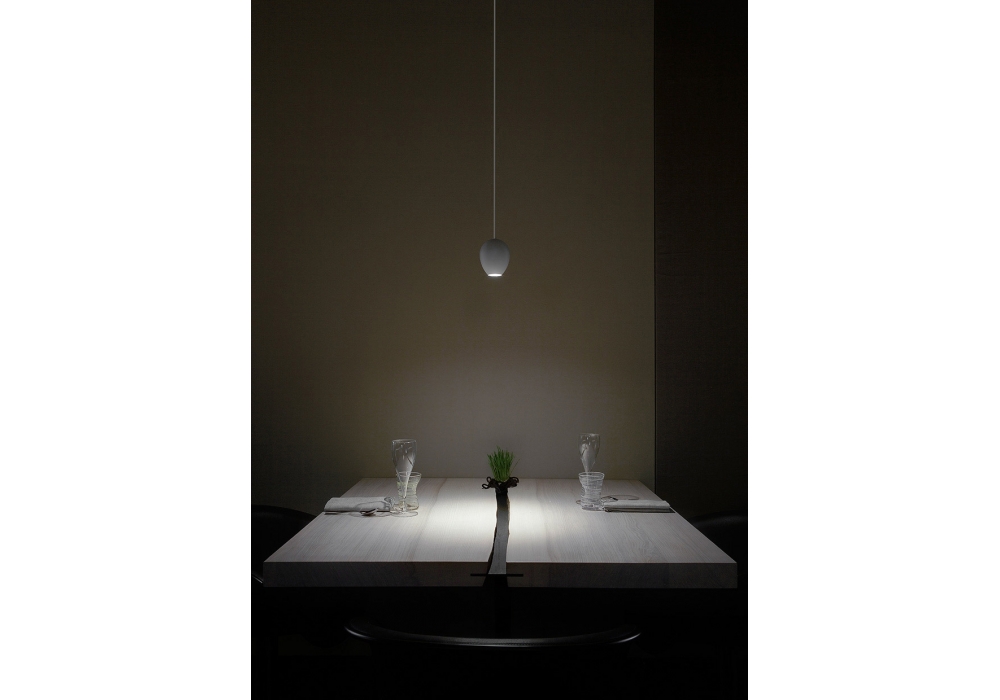 Ovo conçue par Massimiliano Alajmo et Raffaele Alajmo pour Davide Groppi est une lampe à suspension entièrement structurée en métal peint en blanc mat. Le diffuseur est de forme ovale en blanc et masque une source lumineuse avec connexion GU4 de type LED.