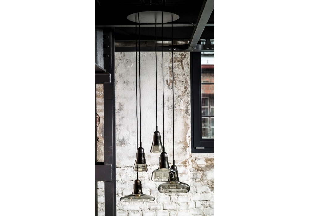 Shadows D25 conçue par Lucie Koldová et Dan Yeffet pour Brokis est une lampe à suspension avec diffuseur en verre soufflé en différentes couleurs et traitements. La structure est en bois et est disponible en différentes essences de bois et finitions. La source lumineuse retenue est de type LED dimmable.