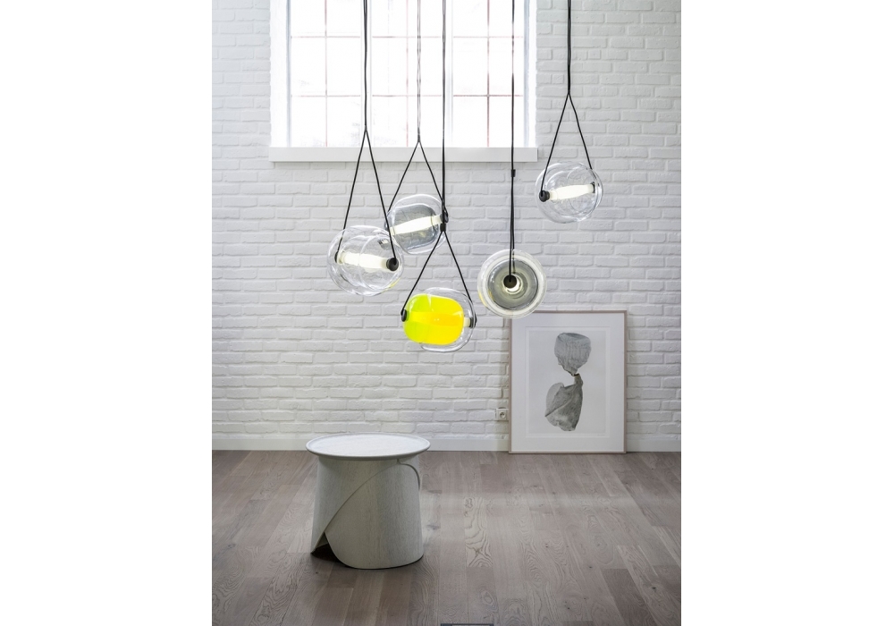 Conçue par Lucie Koldova pour Brokis Capsula est une suspension dont la structure est formée de deux capsules ovales en verre soufflé, disponibles en différentes finitions et qui s'entrecroisent. Le corps de la lampe est disponible en deux couleurs, noir anodisé ou argent anodisé, et intègre une source lumineuse LED à intensité variable (incluse) disponible en plusieurs versions. Le câble d'alimentation est en textile de la même couleur que le plafonnier.
