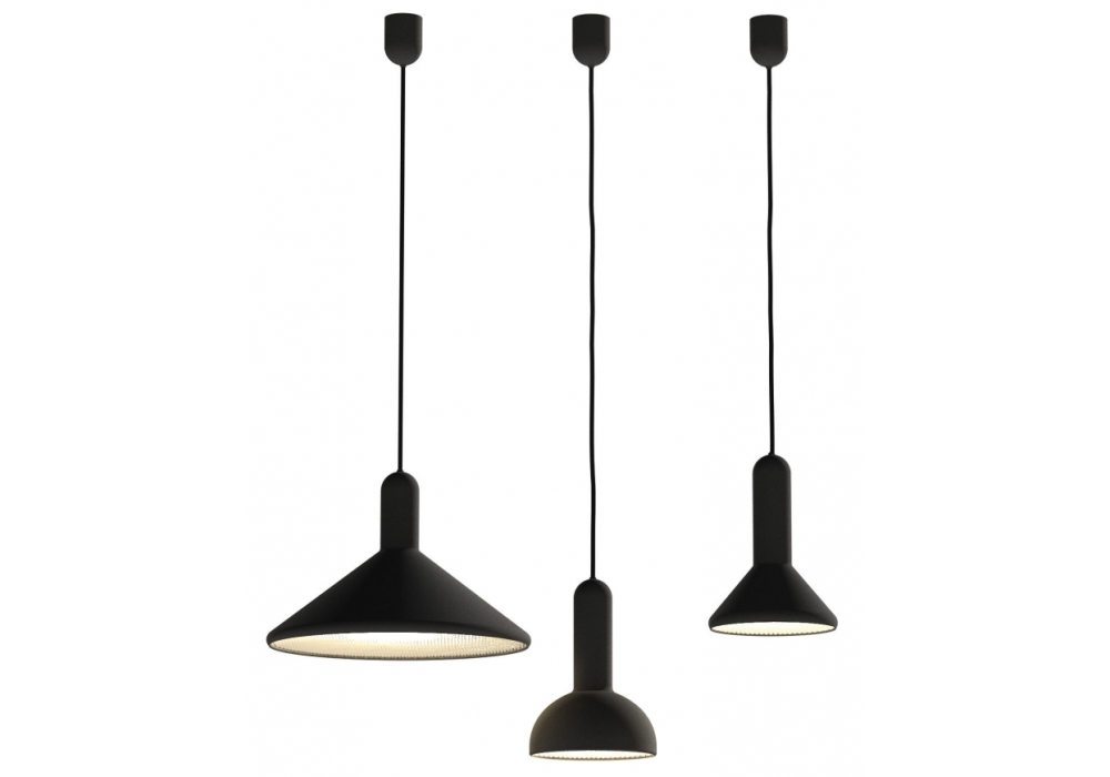Torch Light conçue par Nao Tamura pour Established & Sons est une lampe à suspension avec abat-jour en polymère enduit de PVC et fixation au plafond, le diffuseur est en polycarbonate avec texture diamant transparente. Disponible en différentes finitions.