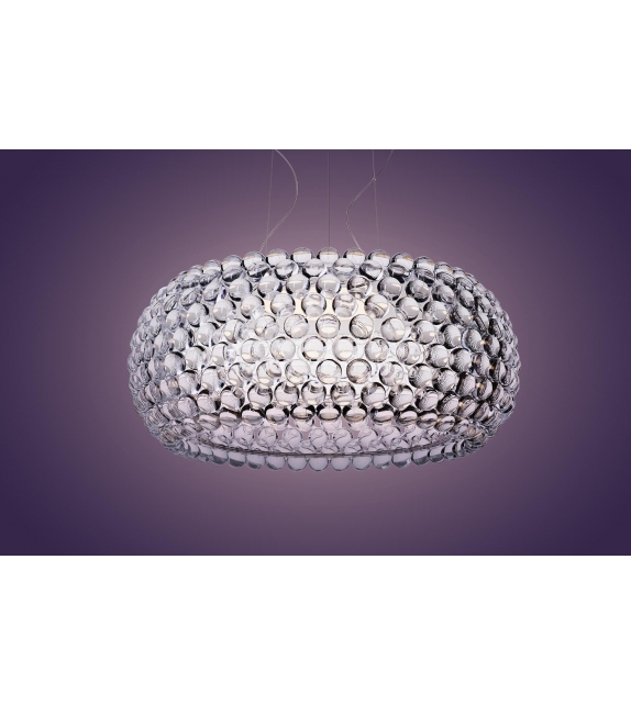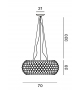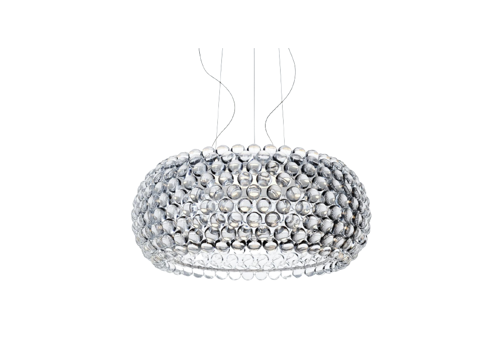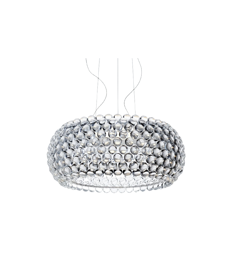 Caboche Plus Grande conçue par Patricia Urquiola et Eliana Gerotto est une lampe à suspension circulaire structurée par la combinaison de PMMA, d'acier, de polycarbonate et d'aluminium. La source lumineuse adoptée est de type LED disponible en différentes versions.