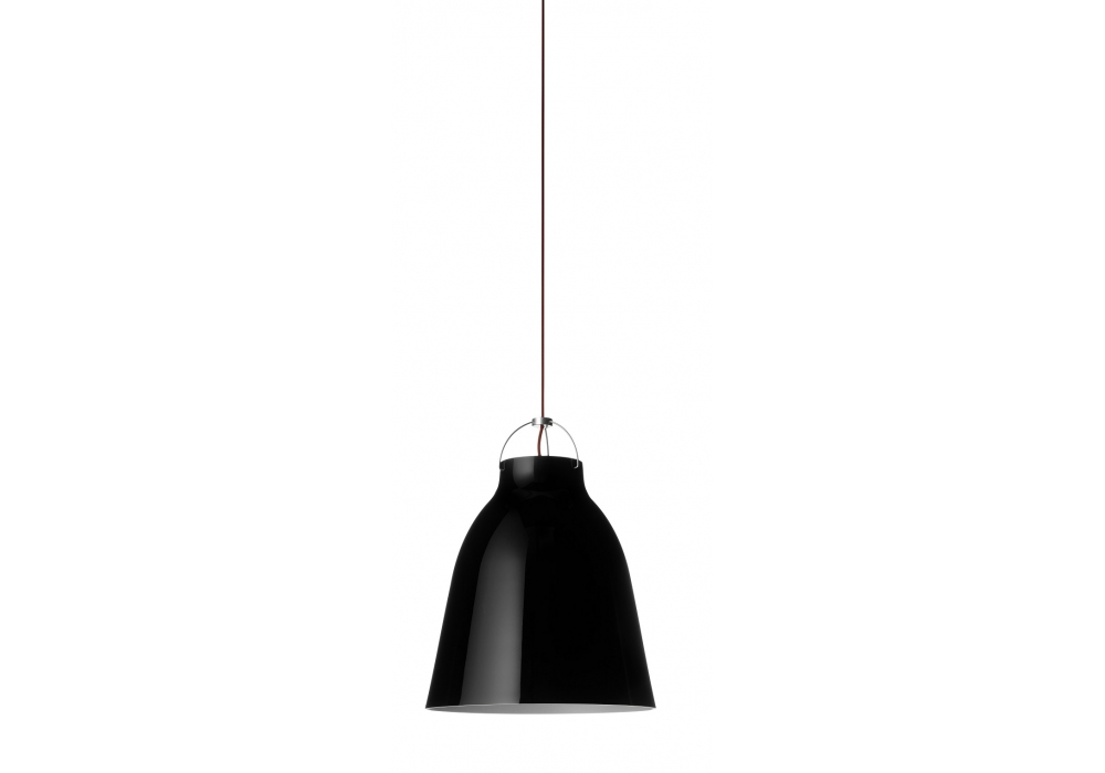 Caravaggio™ conçue par Cecilie Manz pour Fritz Hansen est une suspension réalisée avec un diffuseur en aluminium poli et un câble textile. Câble rouge pour la finition noire, câble gris pour la finition blanche. Disponible en différentes dimensions.