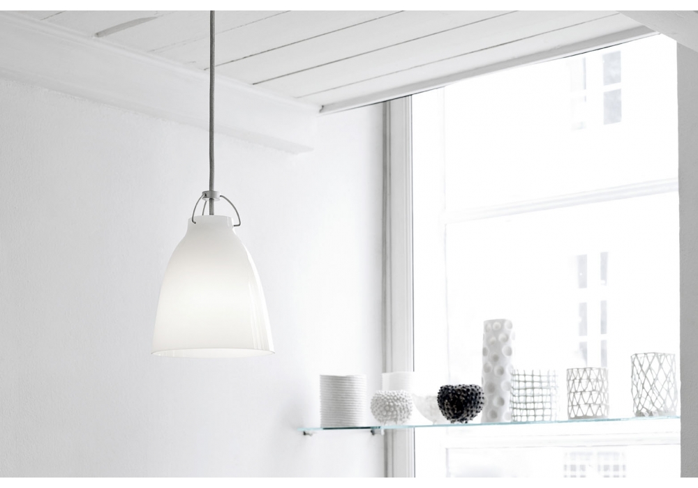 Caravaggio™ Opal conçue par Cecilie Manz pour Fritz Hansen est une suspension réalisée avec un diffuseur en verre opale et un câble textile gris argenté. Disponible en différentes dimensions.