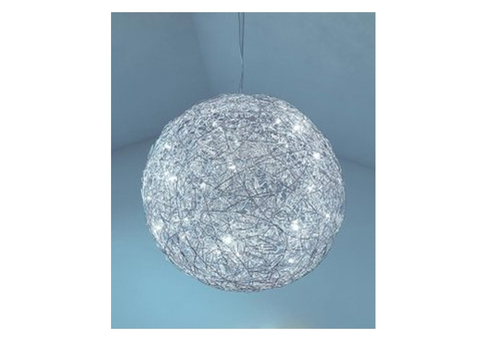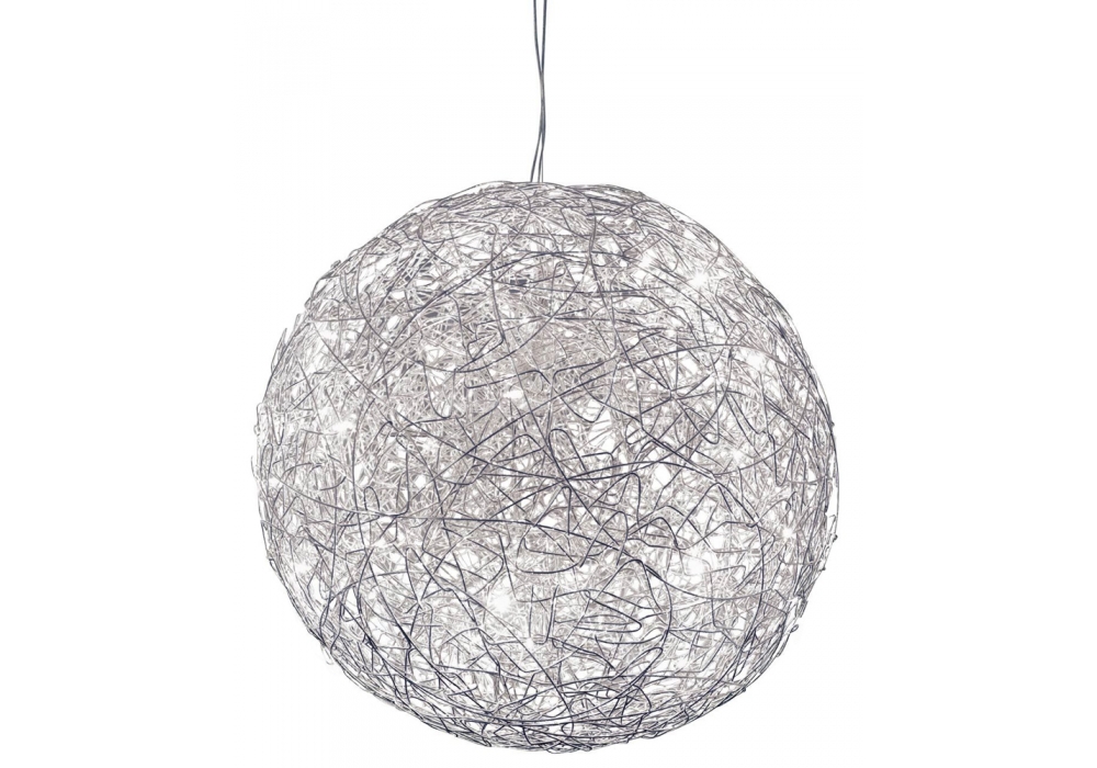 Fil de Fer conçue par Enzo Catellani pour Catellani & Smith est une lampe à suspension en forme de sphère, en fil d'aluminium naturel avec base en nickel ou sphère anodisée or mat avec base anodisée or. Disponible en différentes tailles.