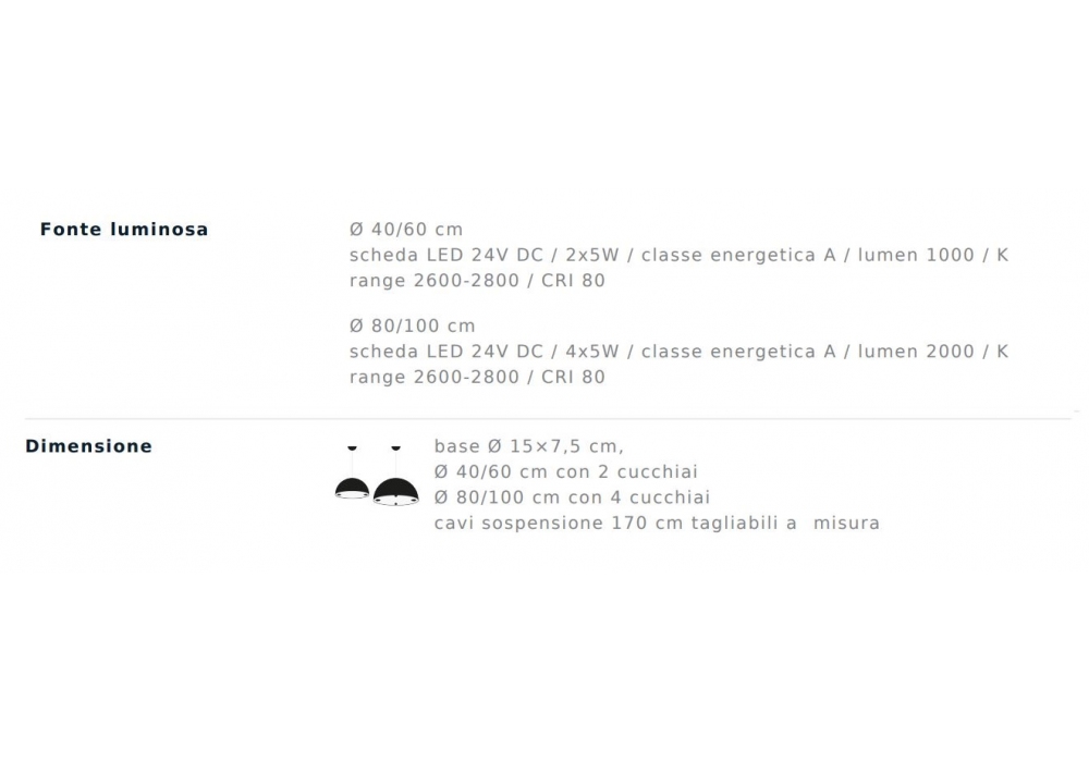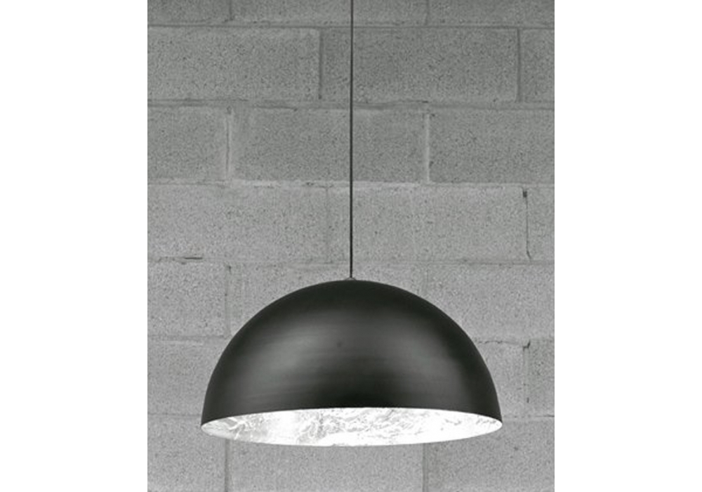 Stchu-Moon 02 conçue et produite par Catellani & Smith est une suspension avec base en métal noir et cuillère porte-lampe en acier. La forme est un hémisphère en aluminium, disponible en différentes tailles, avec une surface interne irrégulière recouverte de feuilles en différentes finitions. L'hémisphère de diamètre Ø100 cm est en fibre de verre.
