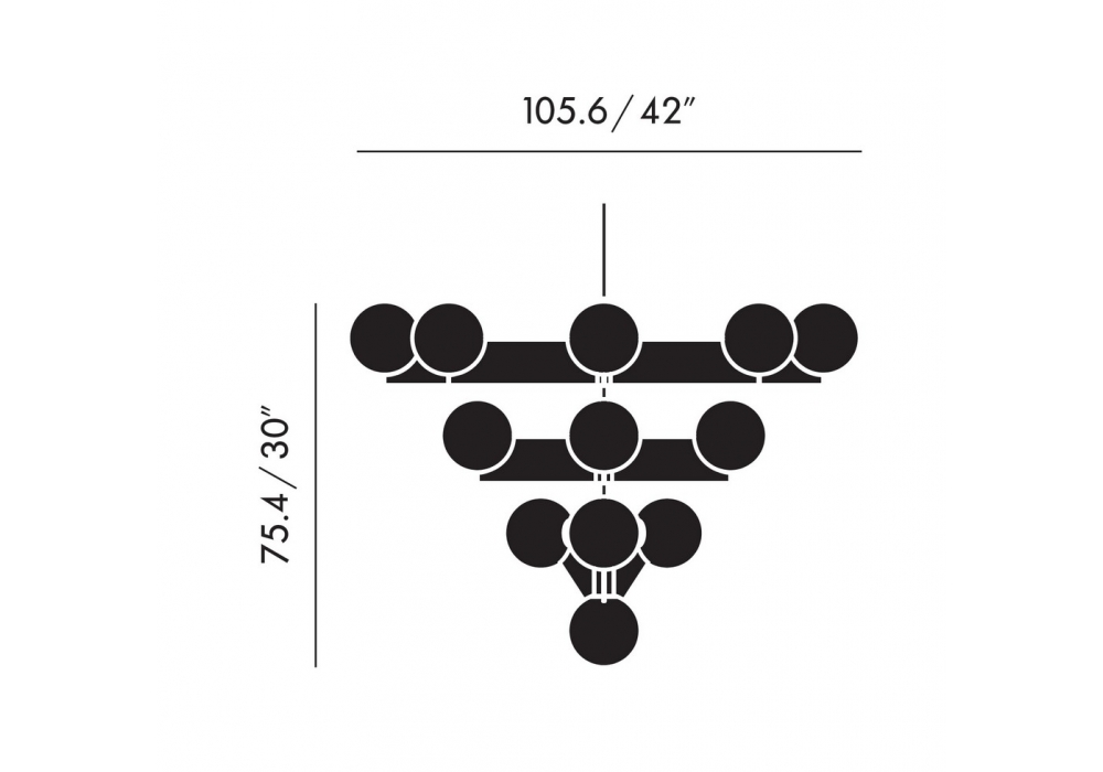 Plane Chandelier conçu par Tom Dixon est un lustre composé d'une structure en acier plaqué laiton et d'une sphère en verre blanc à double couche. Câble tressé noir.