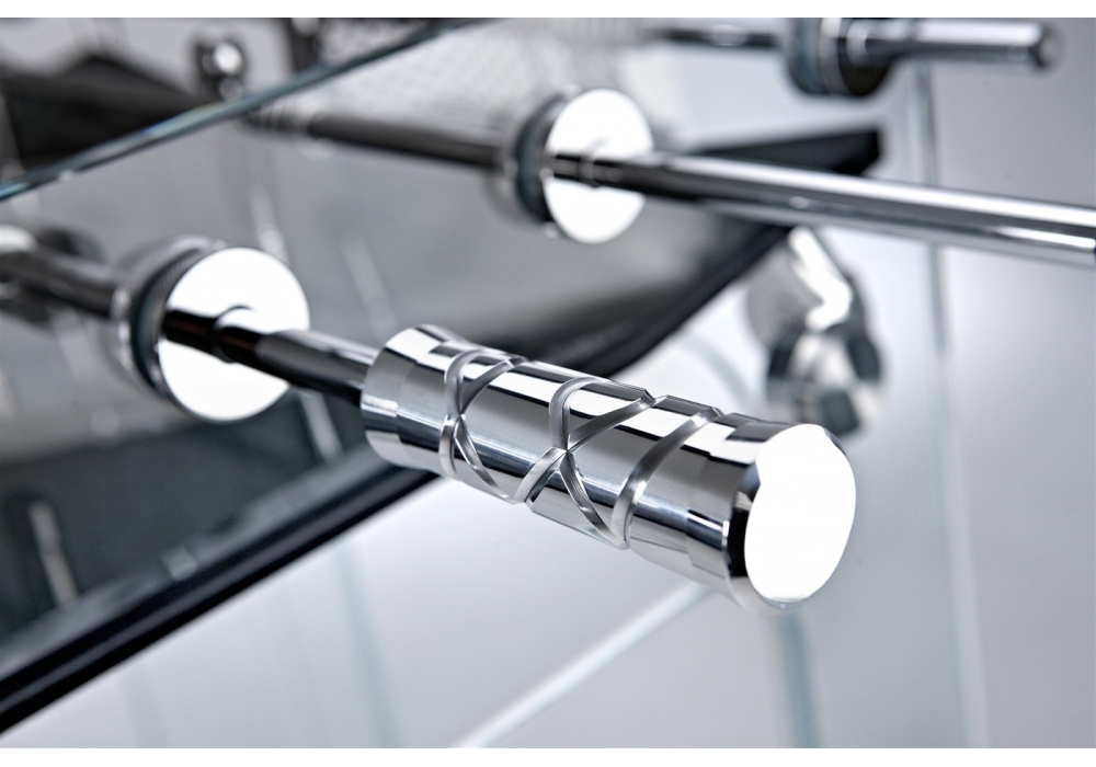 Cut to black again with the Cristallino (Calcio Balilla collection) by Adriano Design for Teckell. Here again crystal with a unique black finish pairs with aluminum. Lightness and strength are bestowed on a work that beguiles with its transparency. The unbridled ecstasy created by an elegant and precious work. Simply style and soul in pure crystal. Cristallino is created using avant-garde technology and the skilled hands of Italian artisans who perfect every detail for an unique and exclusive work of art.