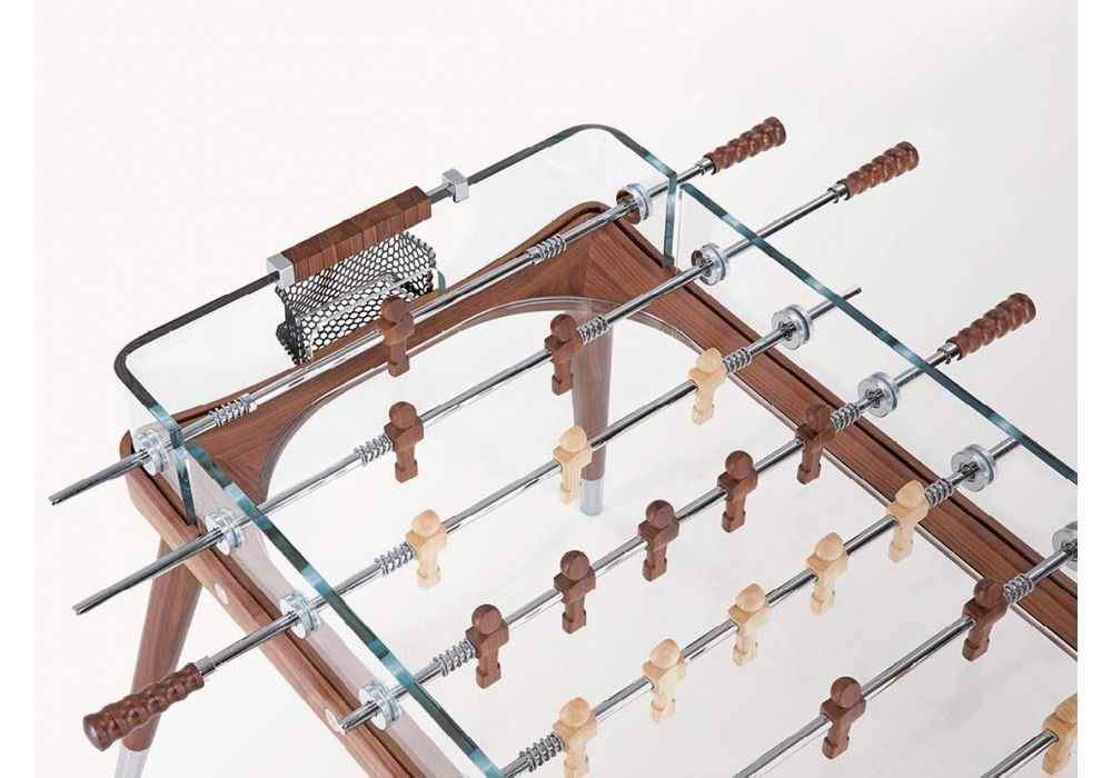 90° Minuto designed by Adriano Design for Teckell is a foosball table. A subtle and elegant wooden structure highlights and supports this modern and essential foosball table, inviting the challenge of ejoying the game until its very last minute (90° Minuto). Engineering and technology is cleverly concealed beneath the elegant lines of this enchanting piece of Teckell Collection.