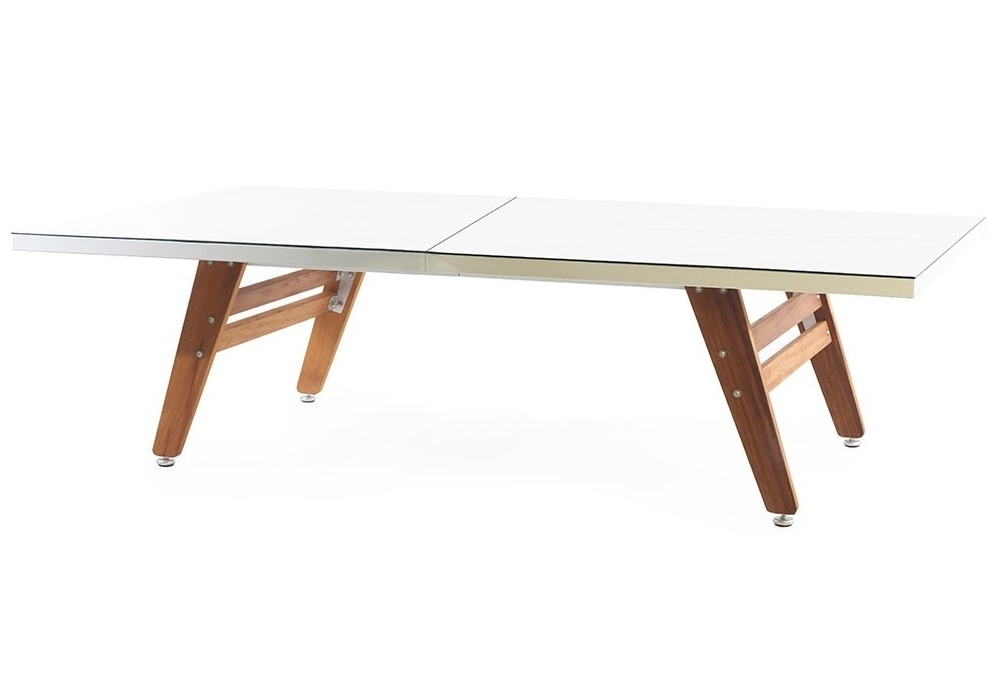 RS-Ping Pong Stationary conçue par Rafael Rodríguez pour RS Barcelona est une table de ping pong disponible en 2 finitions: blanc ou noir. Jambes en bois d'iroko. Balles (6 unités), raquettes (2 unités) et filet inclus.